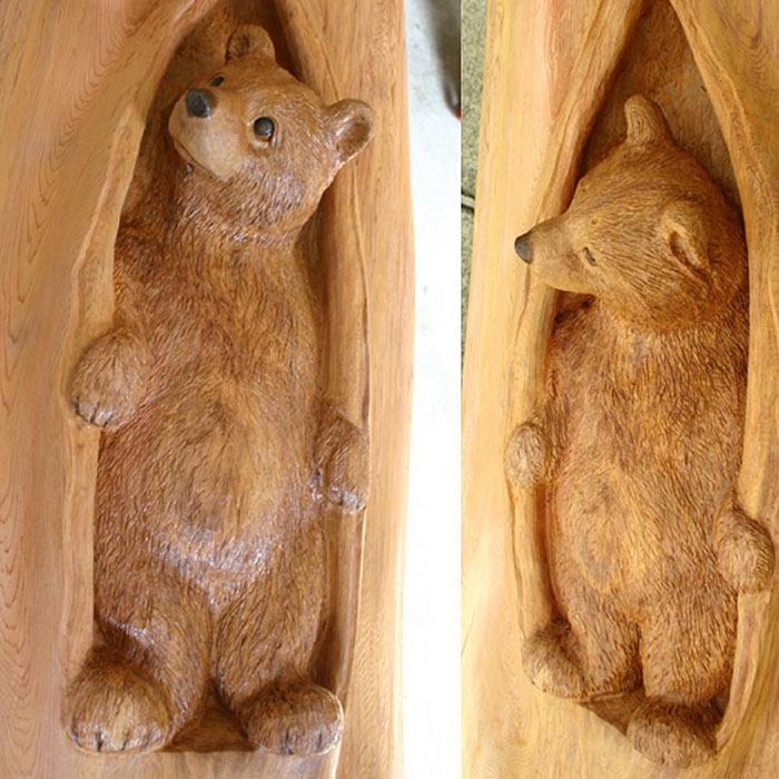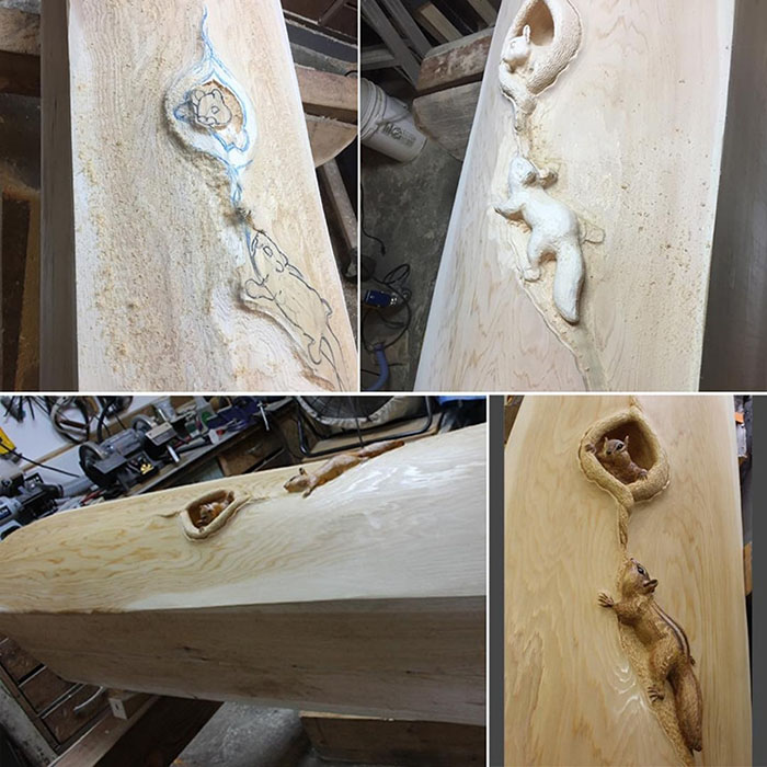此外如此熱愛木雕服務的他,近年更專注於開創更多新的複雜細節,比如浣熊身上的深淺毛色與紋路,視覺上把自然之美與木雕結合起來,不說還以為是真實的!