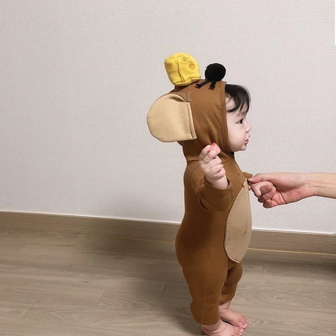 但其實除了以上這些,其他的韓系品牌也有做過擬動物系列的寶寶衣,例如小飛象的紫色童裝,爸比媽咪幫孩子穿上去後,就直接讓他們化成大耳朵的飛象,無論是放空還是打哈欠,這種表情都滿分。