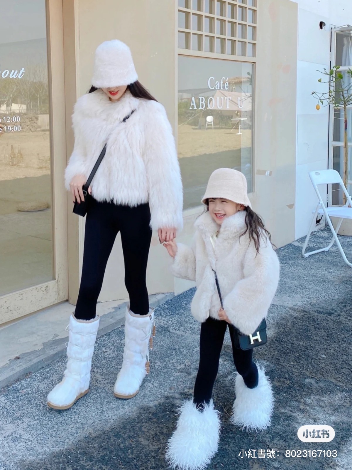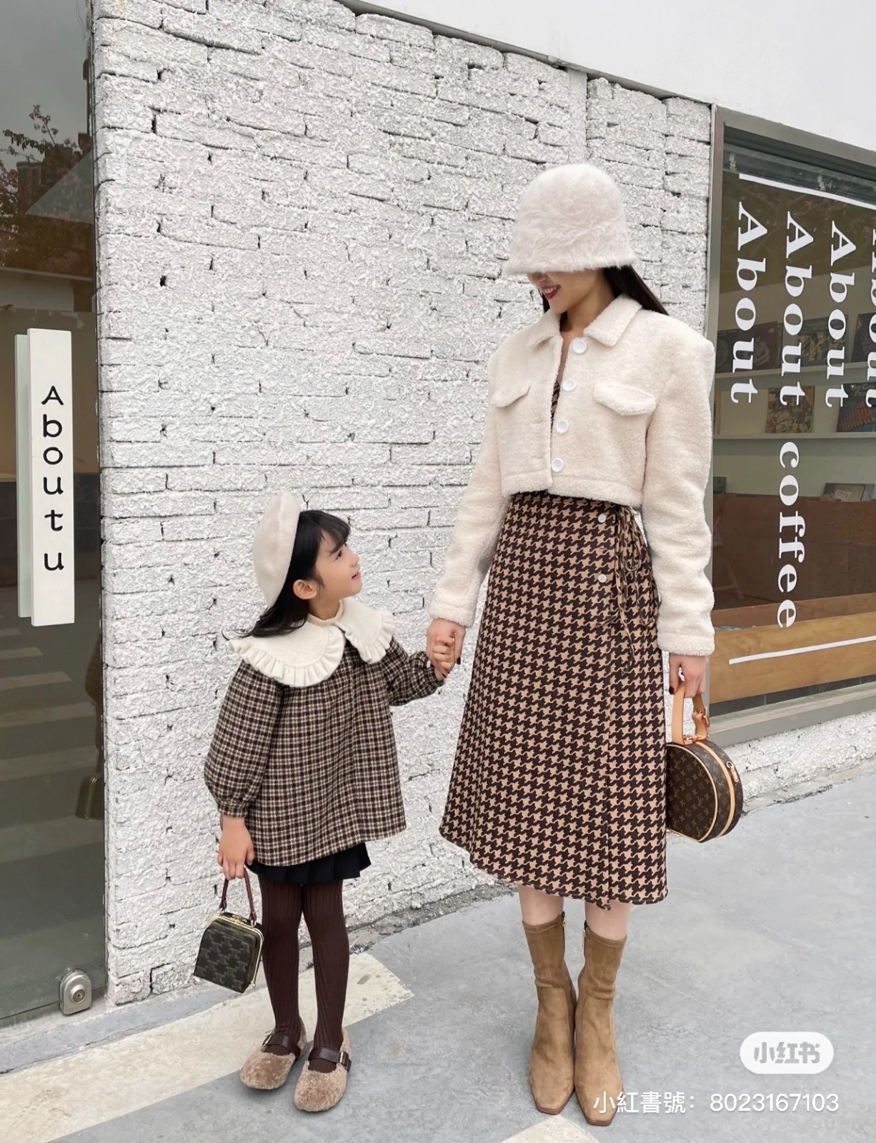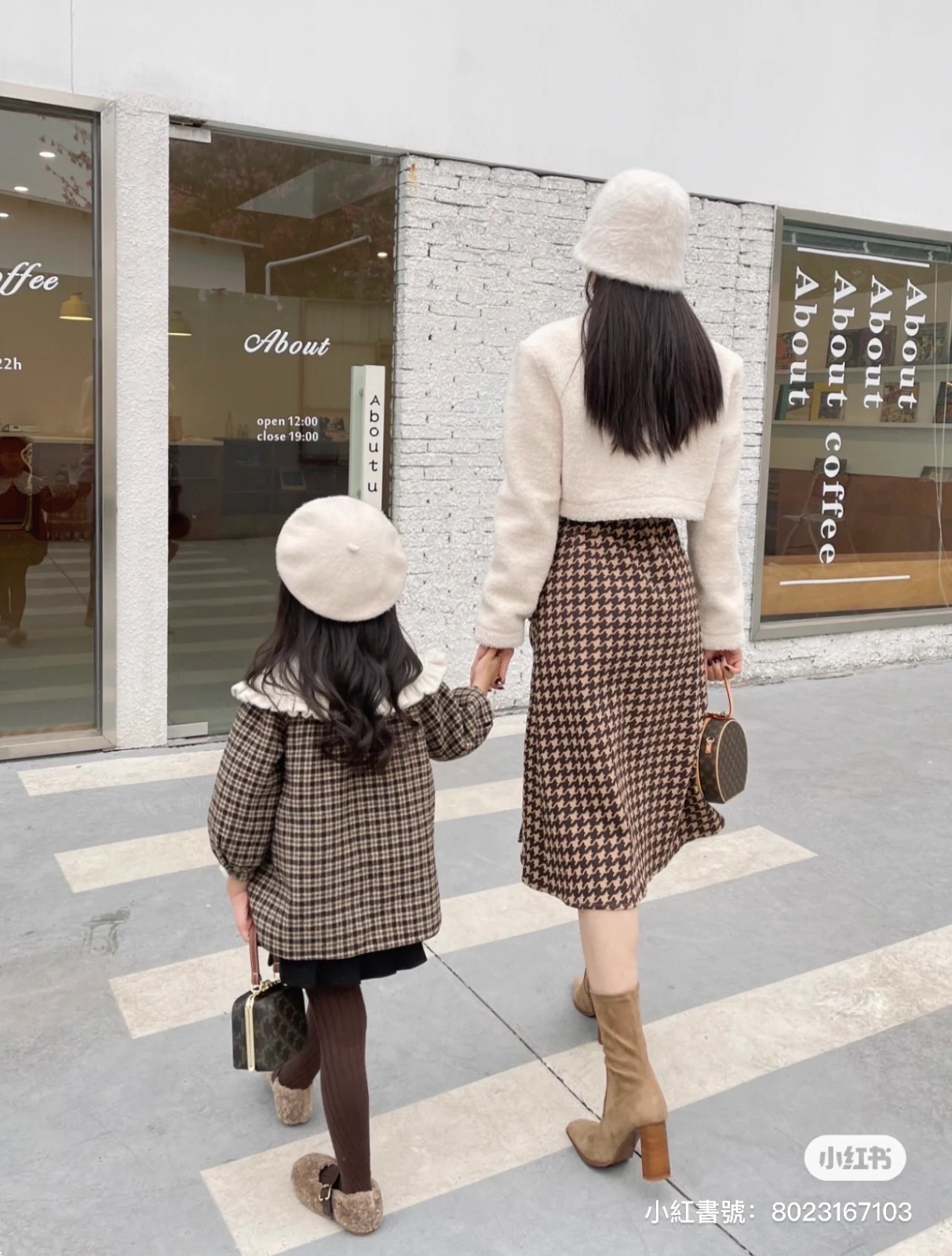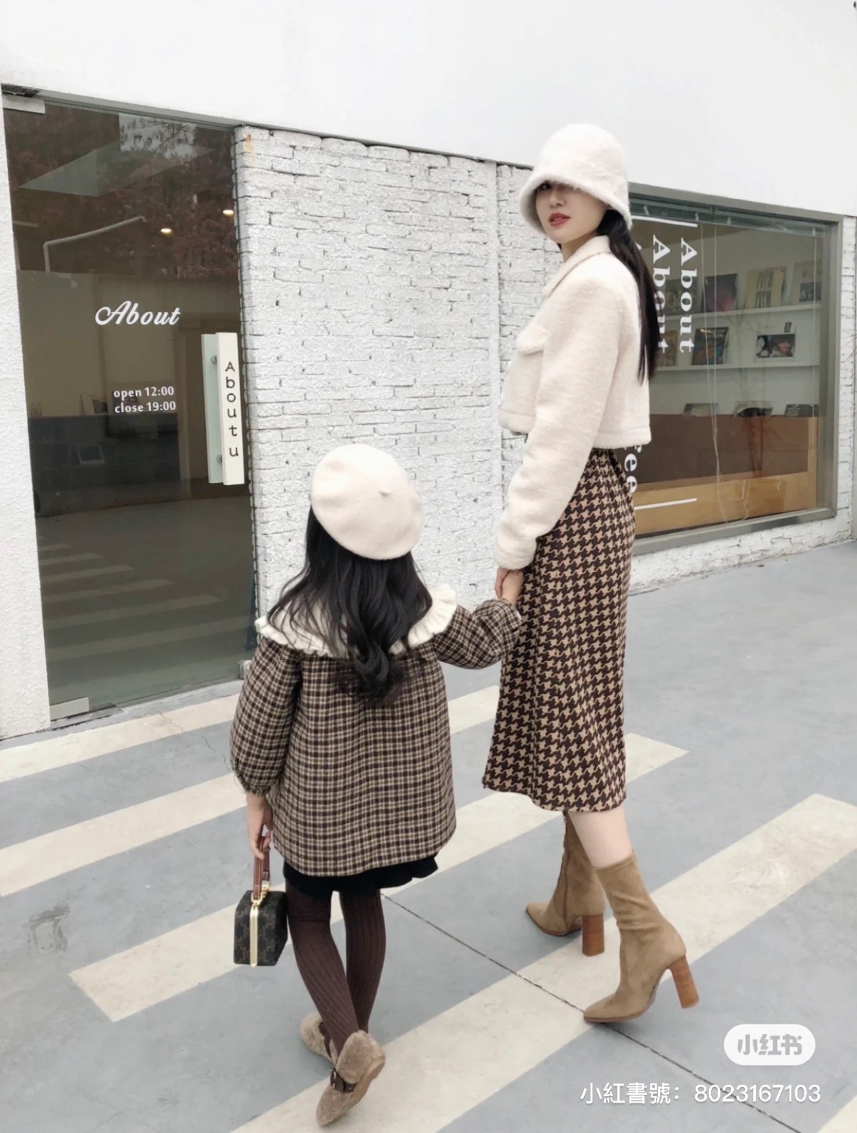 這樣超時髦的母女走在街上,小編一定會轉頭看好幾眼的!尤其媽媽和女兒都戴上時尚的帽子,身穿經典格紋大衣,配上短版外套,腳上穿著一雙咖啡色長靴,整個街道都像是他們的伸展台~