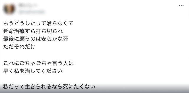 請快點把我治好啊。如果能活下去,我又怎麼會求死。」
