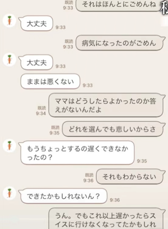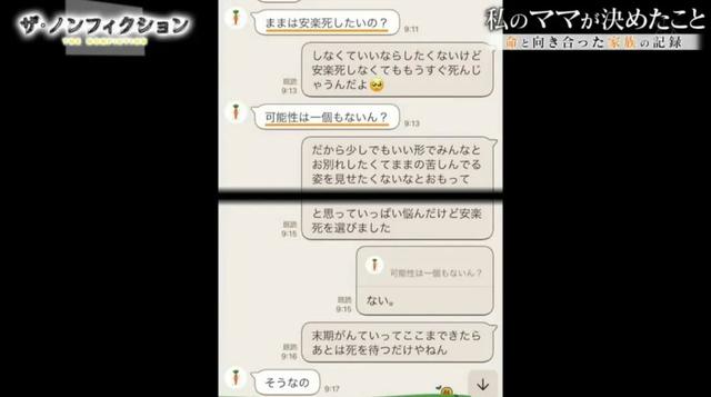 媽媽:「如果可以的話,媽媽也不想。但就算不選擇安樂死,媽媽也很快就要死了。所以想以稍微好一點的狀態離開,媽媽不希望你們看到我痛苦的樣子,想了很多才選擇安樂死。」