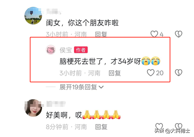 據好友透露,侯麗麗今年僅34歲,離世的原因是腦梗!侯麗麗腦梗發作得特別突然,此前毫無徵兆,發病送醫後,一直處在昏迷狀態,然後就再也沒有醒來。