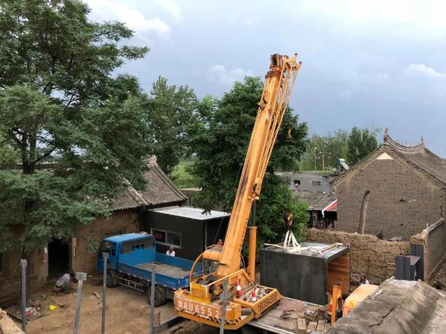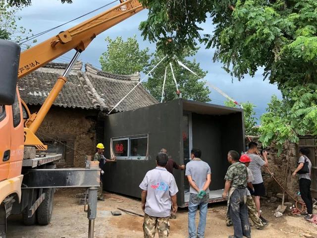 ▼從上海建造完成模塊化「卧室」,利用起重機和軌道,推入老宅內